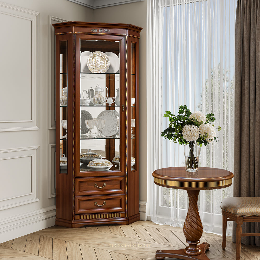 Шкаф для посуды угловой (с зеркалом) Джоконда орех купить в Новосибирске