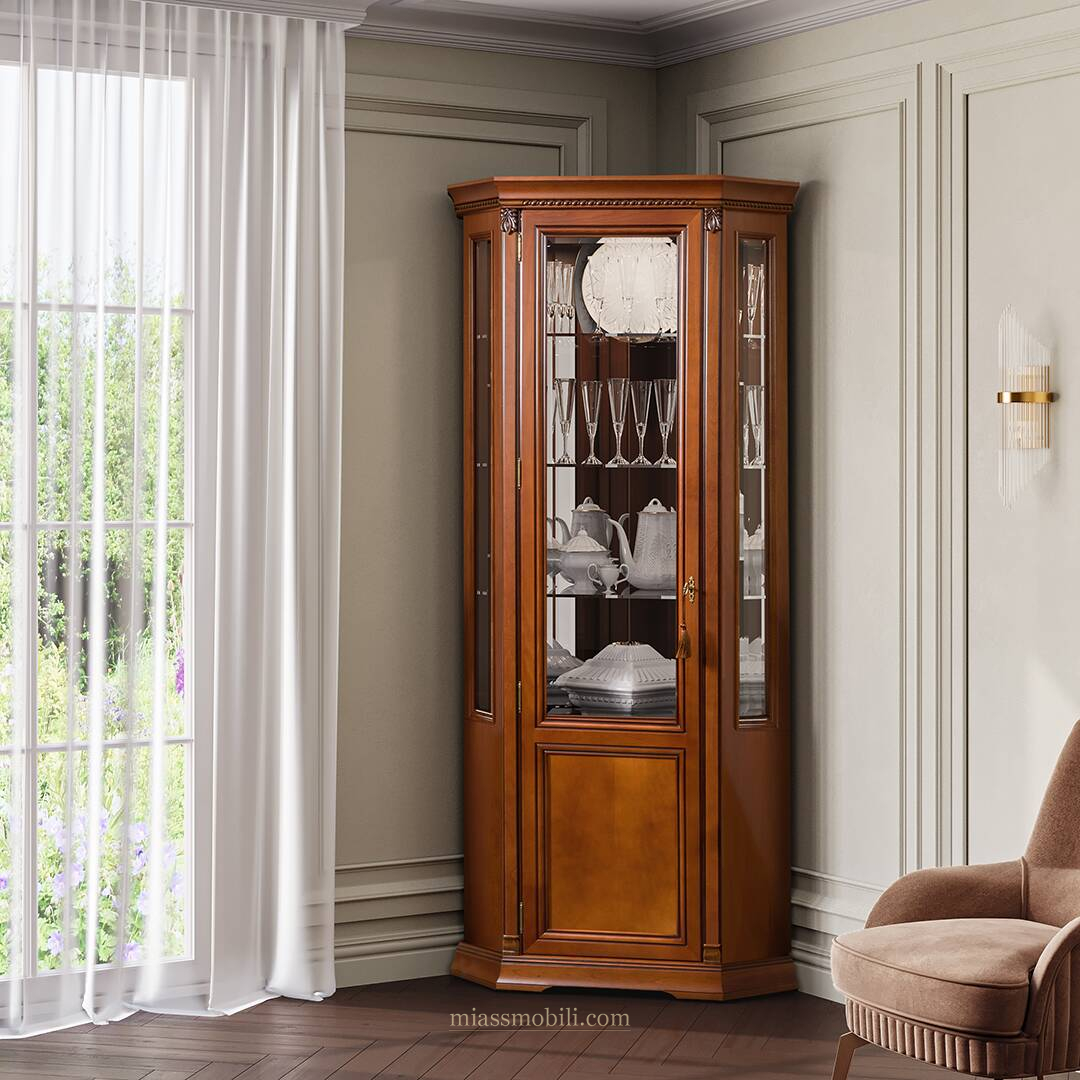 Шкаф для посуды угловой Лоренцо вишня Lorenzo вишня купить в Новосибирске
