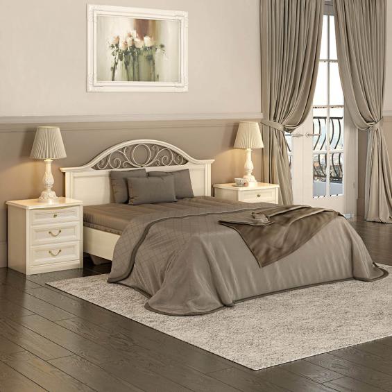 Кровать двойная без ножной спинки с ящиком для белья и КЭ Ekaterina крем купить в Новосибирске