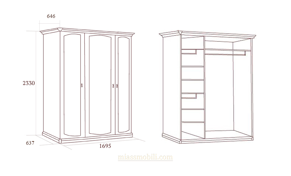 Шкаф 3-х дв.Luigi цвет орех для платья и белья Luigi орех купить в Новосибирске