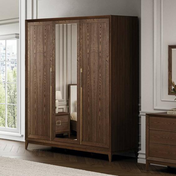 Шкаф 3-х дв. для платья и белья с зеркалом Modena орех Мокко Modena орех Мокко купить в Новосибирске