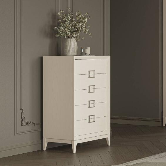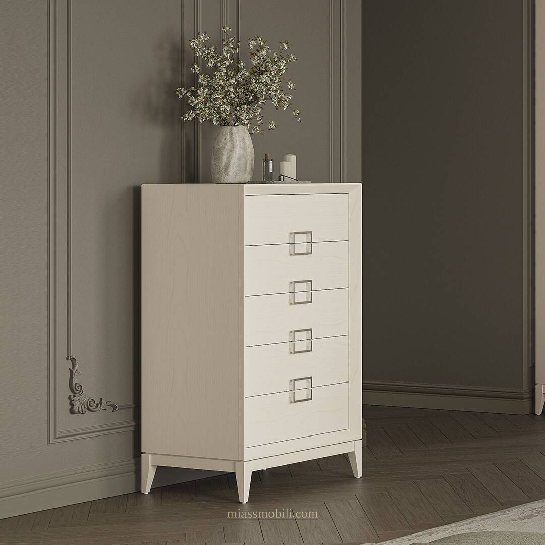 Оригинальная фурнитура в цвете матовое серебро добавляет изысканности и неповторимости каждому предмету мебели.