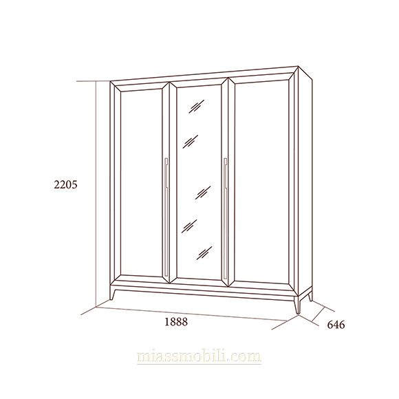 Шкаф 3-х дв .для платья и белья с зеркалом Модена дуб Сатин купить в Новосибирске