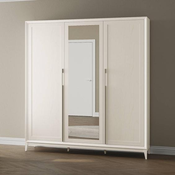 Фурнитура в цвете матовое серебро добавляет изысканности и неповторимости каждому предмету мебели. Естественность текстуры древесины подчеркнута декоративной отделкой Decape(декапе). Основной светлый цвет Сатин украшен серебристым оттенком пор, что придает поверхности легкое шелковистое мерцание. Полуглянцевая непрозрачная отделка набора выполнена светостойкими акриловыми материалами премиум класса.