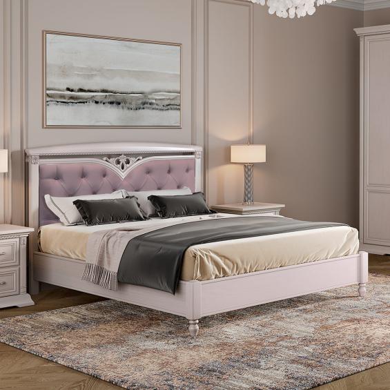 Кровать двойная Lorenzo пудра с мягкой головной и без ножной спинки Lorenzo пудра купить в Новосибирске