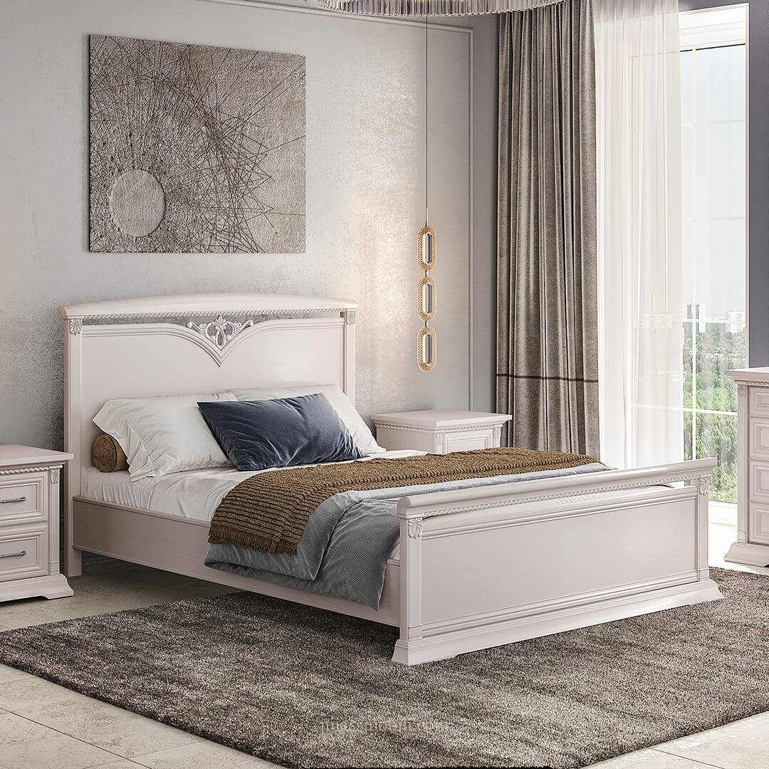 Кровать двойная Lorenzo пудра с ножной спинкой. Lorenzo пудра купить в Новосибирске